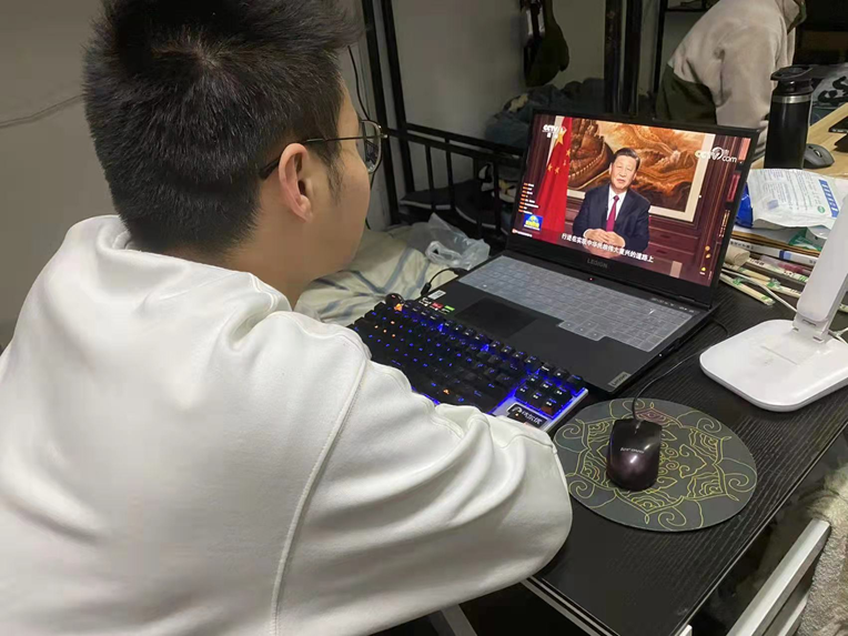 岩土工程系党支部书记包含聆听了贺词后感叹,习近平主席的讲话温暖有力,直抵人心,让人在温暖中收获奋进的力量。他即兴创作了一首《西安疫情跨年感怀》,激励自己在疫情寒冬中勇往直前,并与大家共勉。