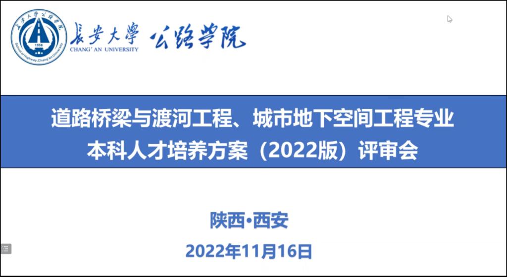 2022年11月16日下午,学院在线上召开道路桥梁与渡河工程、城市地下空间工程专业本科人才培养方案(2022版)专家评审会。专家组由西安理工大学党发宁教授担任组长,北京建筑大学季节教授担任副组长,成员包括西安建筑科技大学宋战平教授、青岛理工大学张素磊教授、北京中航建研航空设计咨询有限公司总经理江慧娟正高级工程师、中交第一公路勘察设计研究院有限公司陈团结正高级工程师、中交第二公路工程局有限公司李强战正高级工程师。汇盈娱乐