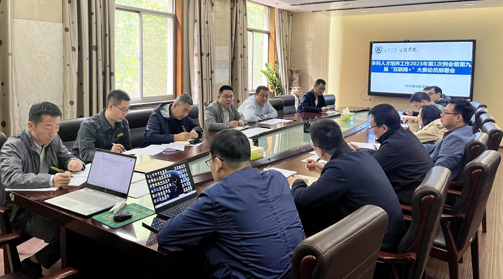 2023年4月28日上午,学院在第二会议室召开本科人才培养工作2023年第1次例会暨第九届“互联网+”大赛动员部署会。副院长张久鹏、副书记刘徐、各系(中心)研究生教学副主任、本科教学副主任、研究生办公室、教学秘书和教务管理人员参加会议,会议由张久鹏主持。