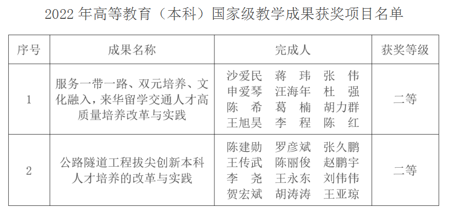 学院将充分发挥教学成果奖的示范引领作用,加强成果的推广和应用,将先进的教学与管理理念、有效的教学方法和手段、优质的精品课程和教材应用到人才培养过程中,为全面提升公路交通拔尖创新人才自主培养质量,加快建设高质量高等教育体系和教育强国贡献“长大”力量。