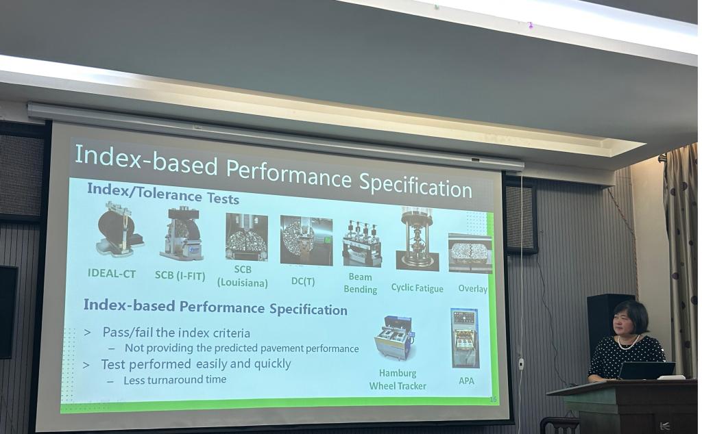 报告中,Jenny Liu教授首先介绍了美国公路建设的施工质量保证体系及其发展历程、沥青混合料的设计和性能预估技术,重点阐述了沥青混合料平衡设计方法,以及如何将质量控制体系、支付标准和平衡设计方法集成,从而有效提高路面的耐久性。报告结束后,Jenny Liu教授详细解答了学院师生提出的技术问题,并对中美公路沥青路面设计、施工和管理技术差异及未来发展方向进行探讨。
