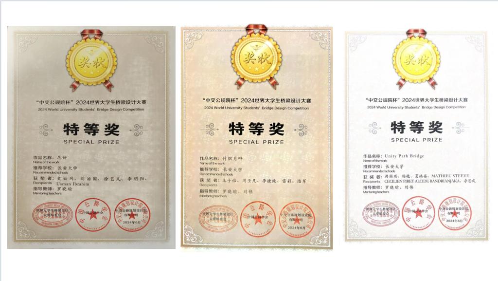 “中交公规院杯” 2024世界大学生桥梁设计大赛获奖名单(长安大学)