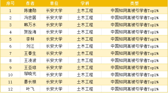 土木工程学科高被引学者Top1%