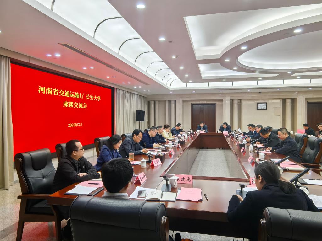 3月4日上午,与河南省交通运输厅举行座谈会。河南省交通运输厅党组书记、厅长高建立会见汪海年一行,党组成员、副厅长靳明等出席座谈会。高建立对汪海年一行的到来表示热烈欢迎,他介绍了河南省在交通新质生产力发展、智慧交通建设等方面的战略规划,对长安大学长期对河南交通运输工作的支持表示感谢,希望双方强化在关键技术材料与工艺、基础设施监测预警与安全防护、交通运输治理能力提升和治理体系建设、交通人才培养与培训等方面的合作,为河南率先实现交通运输现代化提供科技支撑。汪海年介绍了学院在学科建设、人才培养、科研成果等方面的有关情况,希望深化在科技成果转化应用、重大科技攻关、人才培养等方面的交流与合作。