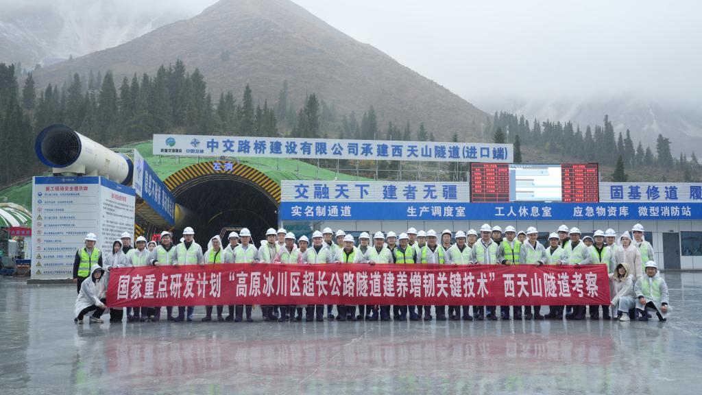 9月17-18日,与会专家和项目组人员赴项目依托工程-G219线昭苏至温宿公路西天山隧道进行现场考察。西天山隧道是世界首条正穿冰川的公路隧道,作为项目的重要依托工程,深入一线考察调研,为项目破解技术难题及研究成果转化应用奠定了坚实基础。
