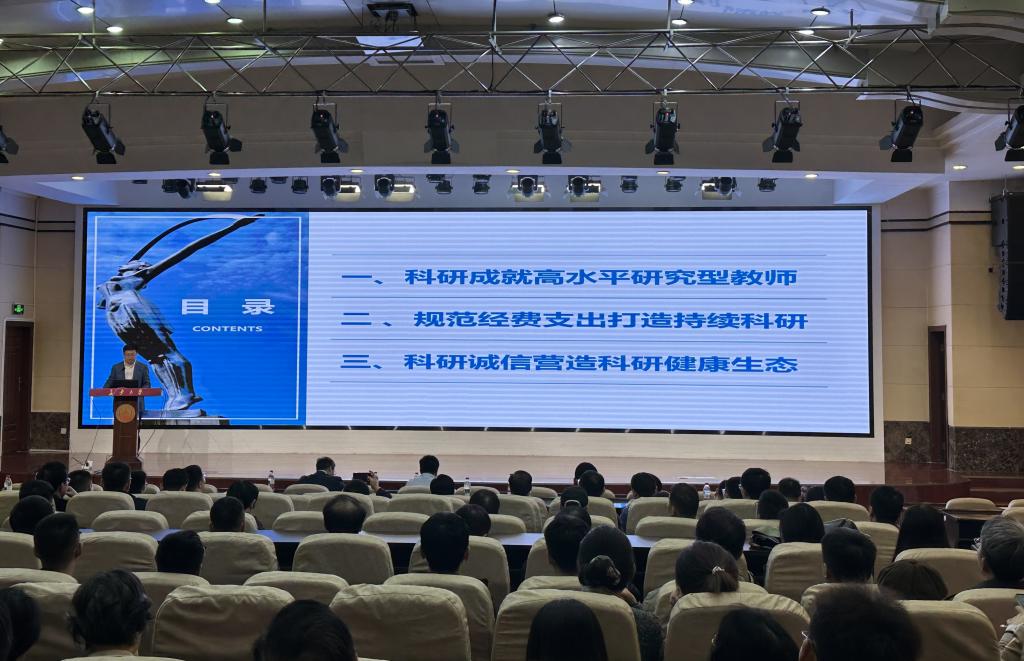 于2025年10月16日晚在南校区学术交流中心召开国家自然科学基金申报动员会。科学研究院副院长兼项目管理中心主任王亚琼、学院领导、各系主任及全体2026年度国家自然科学基金申报教师参加会议。会议由学院党委书记张久鹏主持。