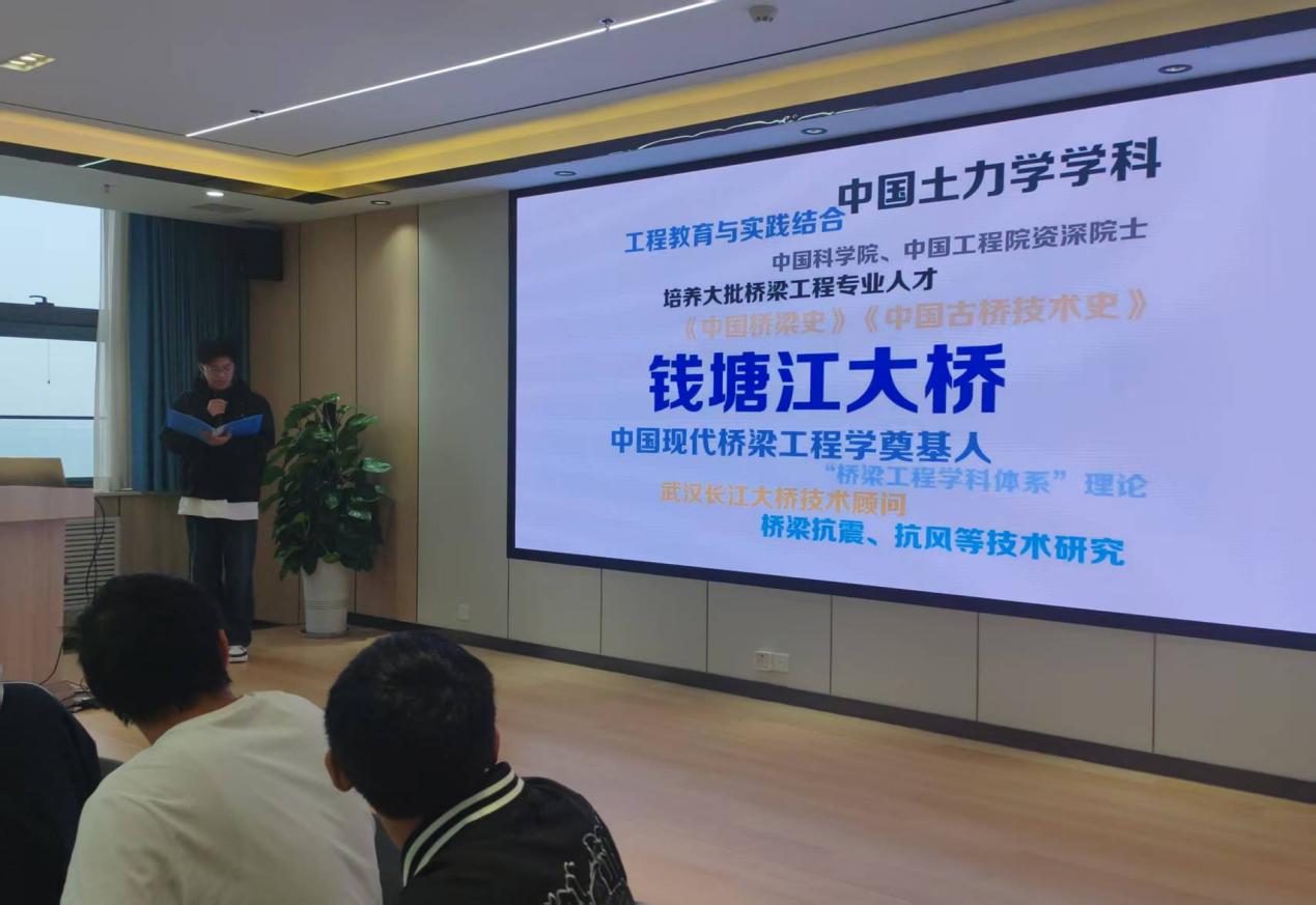 何子康同学带领全体师生回顾了茅以升先生的生平事迹。他生动讲述了茅以升先生“学桥、造桥、写桥”的不凡人生,尤其是主持设计钱塘江大桥时“炸桥复桥”的爱国壮举,展现了先生“国为重、桥为轻”的崇高精神。何子康还结合长安大学在港珠澳大桥、深中通道等国家重大工程中的贡献,强调了学校在交通基础设施建设领域的卓越地位,激励同学们以茅以升精神为灯塔,矢志前行。