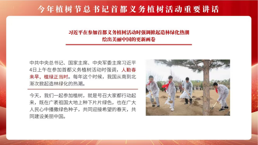 2023年4月4日上午,习近平总书记在参加首都义务植树活动时号召大家都做生态文明建设的实践者、推动者。为深入贯彻落实总书记在植树节活动中的重要讲话精神,汇盈娱乐
