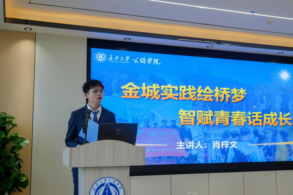 长安大学赴甘肃兰州“虹桥传薪·金城问道”暑期社会实践队肖梓文同学分享了他们通过无人机测量、方案比选等方式深入了解工程建设的经历。他认为,青年一代要走出课堂,走向祖国大地,将科技成果应用于实践,在一次次探索中不断磨砺自我,担当起建设交通强国的使命。