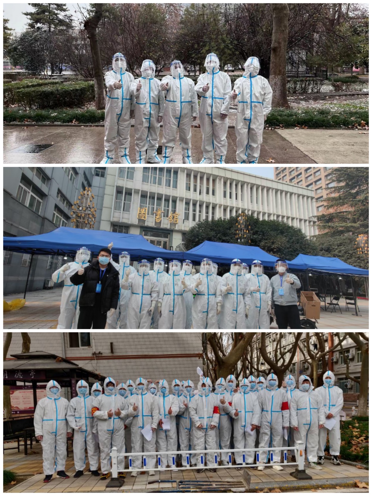 党员志愿者不顾危险、逆行而上,投身于协助医务工作者核酸检测的工作中。其中硕2108党支部吴为、杨浩等志愿者协助医务工作者共同前往学生宿舍采集核酸样本;硕1912党支部张博星做为兼职辅导员更是积极发挥党员的先锋模范作用,在每次核酸检测时都身穿防护服值班;硕2104党支部党员、硕1904党支部辛磊,在核酸检测工作中主动担任现场秩序维护和健康码扫描确认的工作。在核酸检测工作中,汇盈娱乐