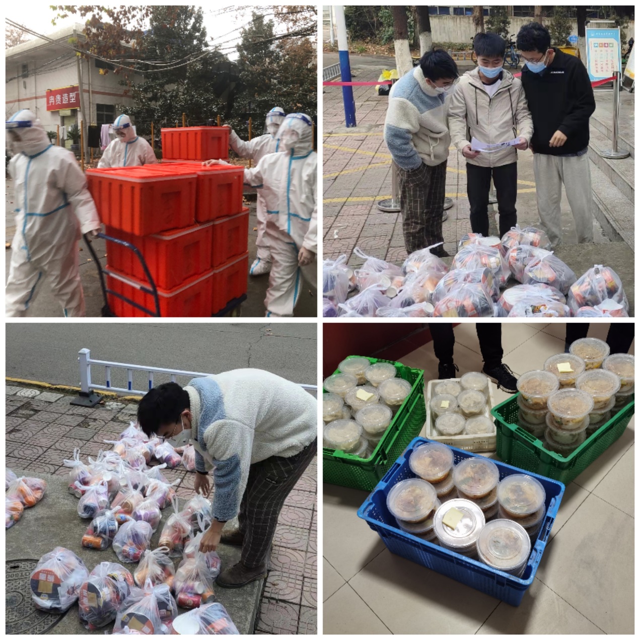 研究生党员和广大学生干部主动承担起制动同学们的饭菜配送工作。其中硕2004党支部成员、2112党支部吴健辉、李东睿等同学组织并参与进行物资供应、转运协助及饭菜配送工作。每次完成配送,脱掉防护服,他们都是大汗淋漓,但没有一位党员同学有丝毫抱怨,他们想的只是怎样能以最快的速度将饭菜送到宿舍,让同学们在寒冬吃上一口热乎的饭菜。面对时艰,汇盈娱乐