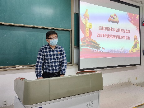 3月9日晚上17:00,本科生第四党支部在WH2308教室开展了党支部组织生活会,本次会议由支部副书记方耀萱主持。党支部书记张吉宁老师首先在会议中强调,党支部建设与学习生活息息相关,在做好党员教育监督的前提下,更应有扎实的群众基础。随后,方耀萱同志对支部在过去一年中的组织发展情况、工作成果、所存在的问题等进行了总结汇报。紧接着,支部成员开展批评与自我批评,结束后,支部成员对党支部班子和正式党员进行了民主评议。最后,学院党委副书记刘徐老师对组织生活会进行了总结,并强调作为一名党员不仅要严于律己,有坚定的政治立场,还要在其他方面发挥先锋模范作用,做到全面发展。
