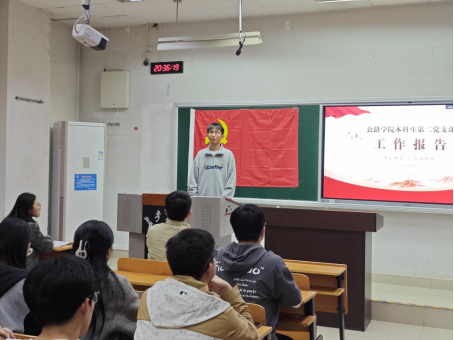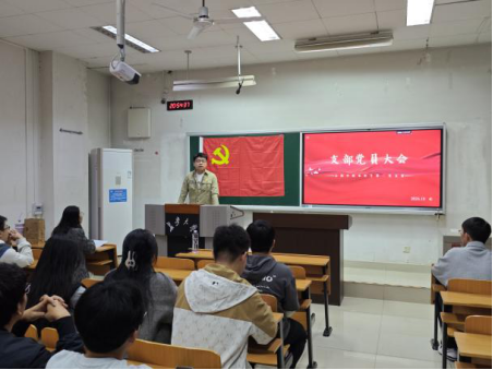 本科生第二党支部党员大会在WM1309教室召开。大会在庄严的国歌声中拉开帷幕。王恒恒同志代表党支部委员会进行工作报告。回顾了过去一年党支部在思想建设、组织建设等方面取得的成绩,并对工作中存在的不足进行总结,对支部未来发展提出期望。报告结束,全体正式党员成功选举产生新一届支部委员会委员。当选的支部委员会代表李璟瑜表示,将带领大家继续发扬党的优良作风和传统,以更加饱满的热情和更加扎实的工作,推动第二党支部建设再上新台阶。