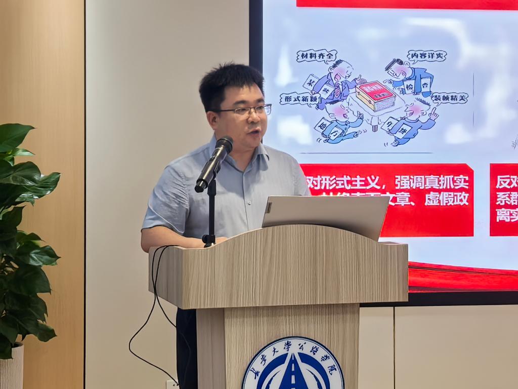 面向全体教职工开展深入贯彻中央八项规定精神学习教育专题党课。此次党课以线下和线上形式结合开展,由院党委书记张久鹏主讲。学院领导班子成员、教工党支部书记、系(中心)主任、科级干部在北校区弘毅大厦六层第三会议室参加,其他教职工线上参会学习。