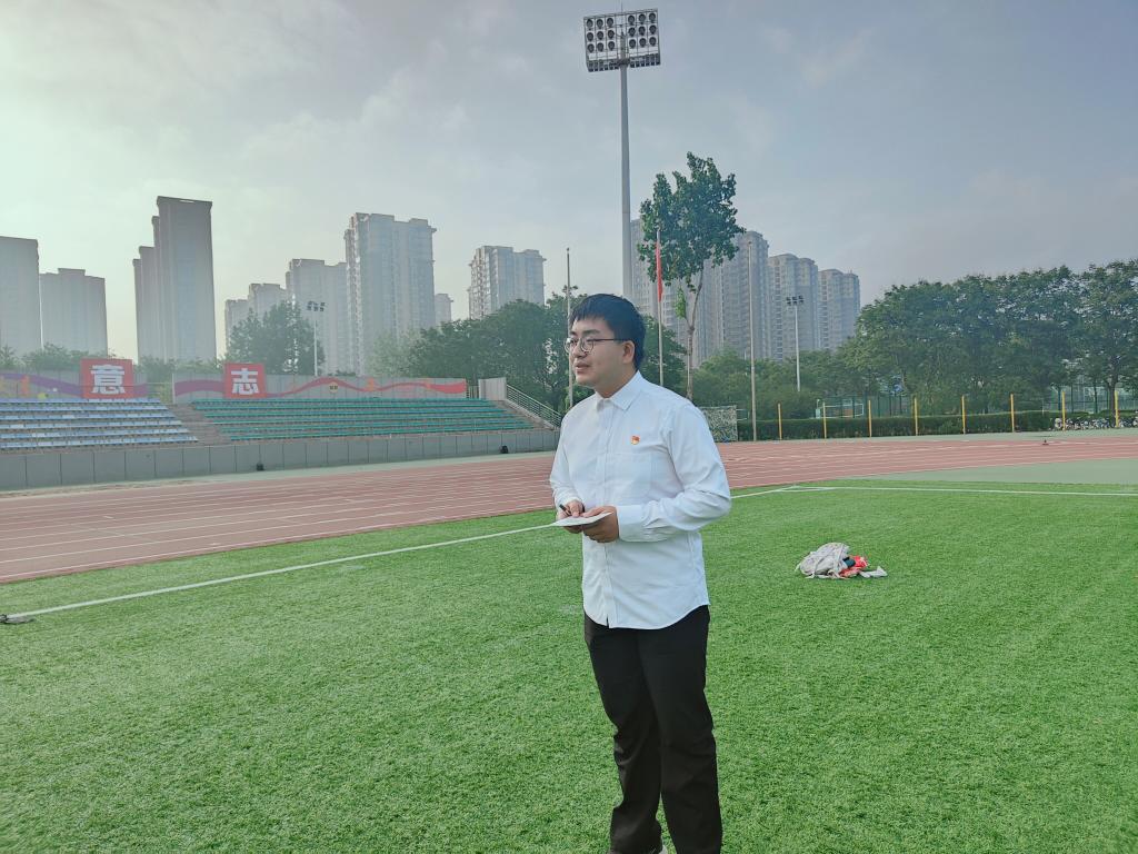 本科生第一党支部在朝晖体育场组织开展“升旗铸魂忆初心,执笔寄情颂党恩”主题党日活动,活动由学生支部书记雷洋寒主持。