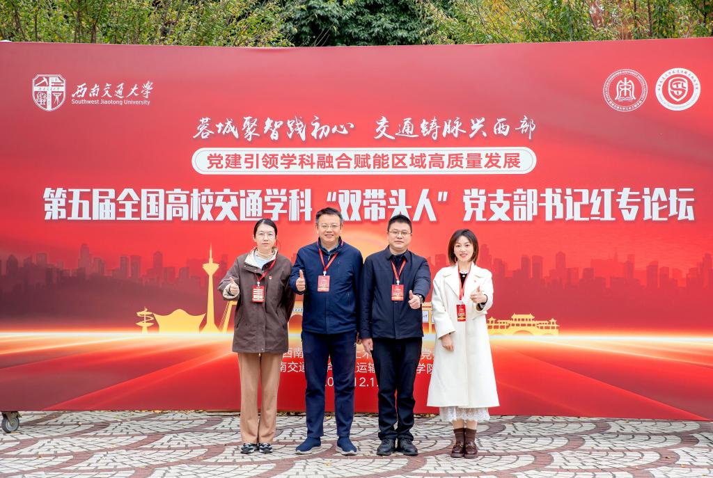 12月12日-12月14日,第五届全国高校交通学科“双带头人”教师党支部书记红专论坛在成都西南交通大学召开。本次论坛以“蓉城聚智践初心,交通铸脉兴西部——党建引领学科融合赋能区域高质量发展”为主题,旨在深入学习贯彻习近平新时代中国特色社会主义思想和党的二十大四中全会精神,落实新时代党的建设总要求和新时代党的组织路线,进一步加强高校交通学科“双带头人”教师党支部书记模式建设,推动党建工作与学科建设、人才培养、科学研究等中心工作同频共振、互促共进。汇盈娱乐