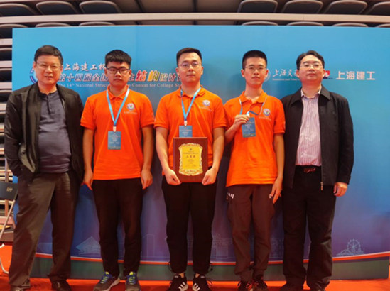 10月17日,由中国高等教育学会工程教育专业委员会、高等学校土木工程学科专业指导委员会、中国土木工程学会教育工作委员会和教育部科学技术委员会环境与土木水利学部共同主办,上海交通大学承办的“上海建工杯”第十四届全国大学生结构设计竞赛顺利闭幕。本届大赛从全国各省(市)分区赛1148支队伍中选拔出112支队伍,进行全国总决赛。由我校土木工程专业学生潘家冬、陈旭、沈新隆组成的参赛队,在王步、李悦两位老师指导下,荣获二等奖。